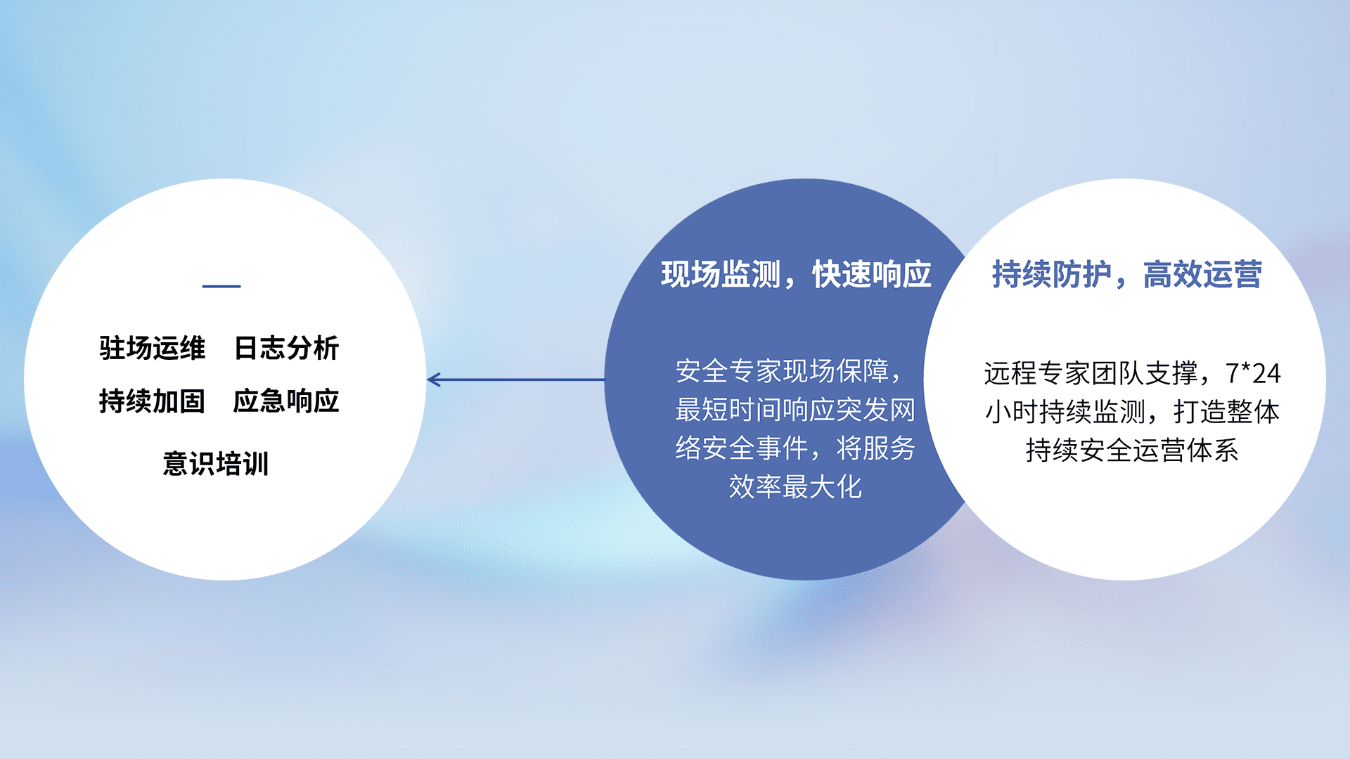 针对客户行业特性,,提供专属的一站式安全管理服务,,,,帮助客户全面感知网络空间威胁,,,通过安全专家的线上、、、、线下防护支持,,实现风险闭环,,,,将安全保障常态化,,,为客户打造常态化安全运维运营服务。。